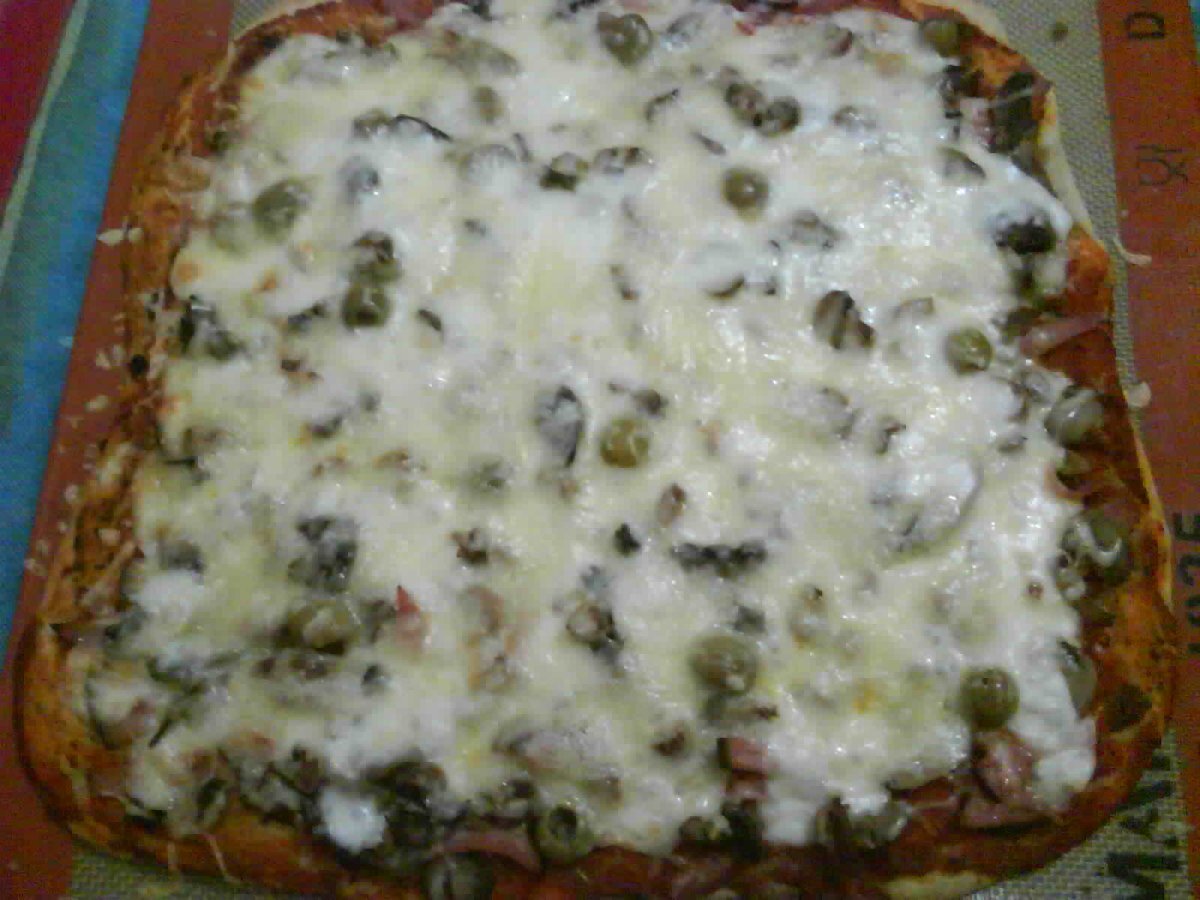 Pizza jambon, champignon, mozzarella et emmental votez maintenant Platmoyen50 min Envoyer cette recette à un ami Imprimer cette page Poser une question à l'auteur Publier votre photo de cette recette Ingrédients 6 250 g de farine 125 ml de lait 60 ml deau 3 pincées de sel 1 cuillère à café de levure de boulanger 1 cuillère à soupe dherbe de Provence 1 boite de tomates pelées 1 cuillère à soupe dherbe de Provence 2 cuillères à soupe dhuile dolive Sel 5 tranches de jambon de dinde fumé 1 boîte de champignon 150 g de mozzarella râpé 150 g demmental râpé Quelques olives vertes