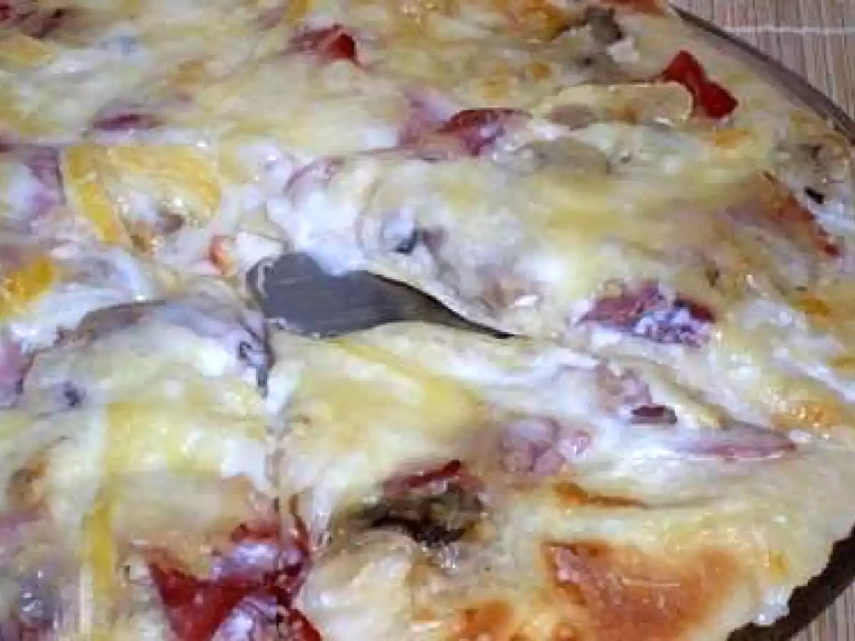 Pizza montagnarde Platfacile1 h 20 m Envoyer cette recette à un ami Imprimer cette page Poser une question à l'auteur Publier votre photo de cette recette Ingrédients 4 INGREDIENTS PATE (3 pizzas) 2 càs d'huile d'olive 4 càs de lait demi-écrémé, 18 càs d'eau (la quantité d'eau peut varier selon la teneur de la farine, commencez par 14 et rajoutez le reste au fur et à mesure) 500 gr de farine T55 2 càc de levure boulangère, 1,5 càc de sel, 2 càs de sucre en poudre 2 oeufs PIZZA MONTAGNARDE Creme fraiche épaisse, champignons de Paris frais, mozzarella, jambon cru, 1/2 roblochon, Fromage rapé spécial cuisson