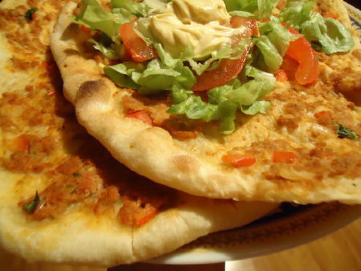 Pizza turque (le lahmacun) Platfacile23 min Envoyer cette recette à un ami Imprimer cette page Poser une question à l'auteur Publier votre photo de cette recette Ingrédients 4 Pour la pâte, il vous faudra : 500 g de farine 1/2 cube de levure 1 Oeuf 1/2 pot de yaourt nature 2 cuillères à soupe d'huile De l'eau environ 150 ml 1 cuillère à café de Sel 1 Pincée de sucre POUR LA GARNITURE, il vous faudra : 300 g de viande hachée Sel Poivre Piment rouge 150 g de coulis de tomate 1/2 Oignon 1/2 poivron Persil