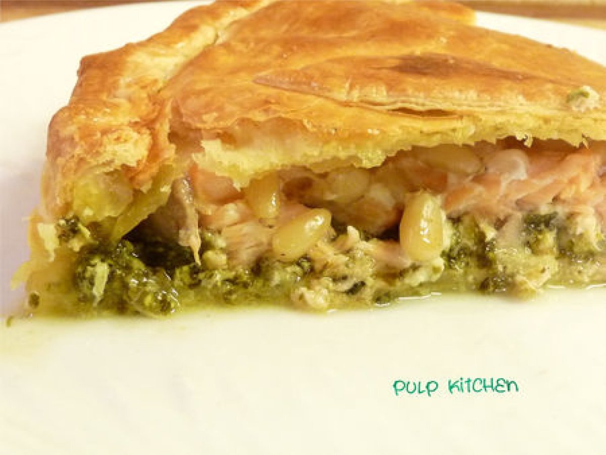 Pleine d'oseille cette tourte... votez maintenant PrécédentSuivant Platfacile1 heure737 Kcal Envoyer cette recette à un ami Imprimer cette page Poser une question à l'auteur Publier votre photo de cette recette Ingrédients 6 2 disques de pâte feuilletée pur beurre 500 g de filet de saumon 450 g d'oseille coupée surgelée 4 petites échalotes 10 cl de vin blanc 1 cuiller à soupe de fumet de poisson en poudre 20 cl de lait concentré non sucré 50 g de pignons 2 oeufs entiers Huile d'olive - sel et poivre