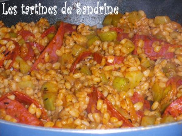 Poêlée de blé au chorizo votez maintenant PrécédentSuivant Platfacile25 min Envoyer cette recette à un ami Imprimer cette page Poser une question à l'auteur Publier votre photo de cette recette Ingrédients 2 du blé huile d'olive une ou deux courgettes une petite boite de sauce tomate des tranches de chorizo sel poivre herbes de Provence