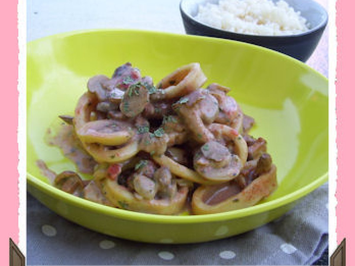 Poêlée de calamars aux champignons Platfacile40 min179 Kcal Envoyer cette recette à un ami Imprimer cette page Poser une question à l'auteur Publier votre photo de cette recette Ingrédients 4 420 g d'anneaux de calamars surgelés 1 petite boite de tomate en dés 1 cuillère à café de paprika 125 ml de vin blanc 125 g de girolles 400 g de champignons de paris 1 gousse d'ail 2 cuillères à café de crème fraîche à 15% Cerfeuil Sel Poivre
