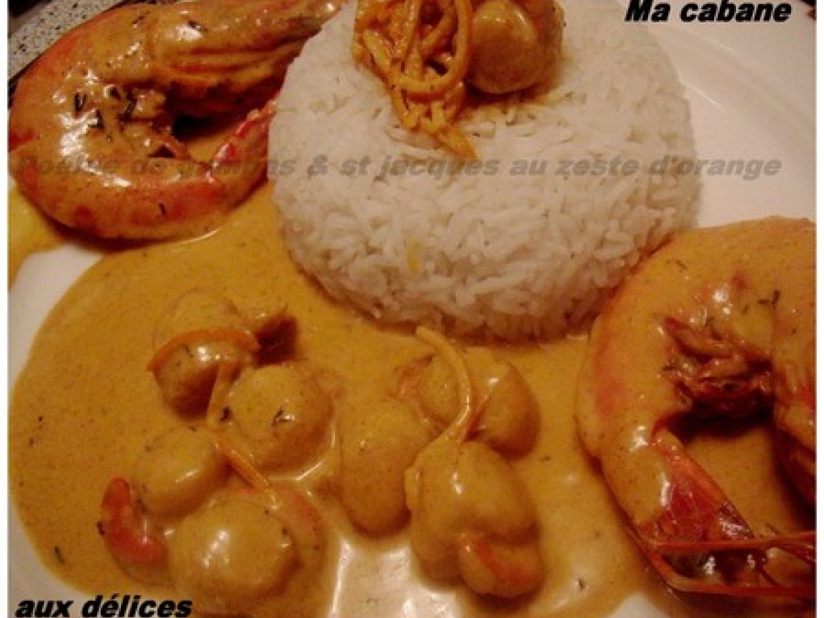 Poêlée de gambas & st jacques au curry PrécédentSuivant Platfacile10 min Envoyer cette recette à un ami Imprimer cette page Poser une question à l'auteur Publier votre photo de cette recette Un plat très raffiné et subtilement parfumé à l'indienne. Ingrédients 2 4 belles gambas 250 gr de noix de St Jacques 1 cuillère à café de paprika 1/2 cuillère à café de curry 1/2 cuillère de garam massala 1 gousse d'ail 1 tasse d'eau mélangée à 1 cuillère de fumet de poisson 30 cl de crème liquide piment (si vous aimez relevé) Thym Zeste d'orange Riz basmati