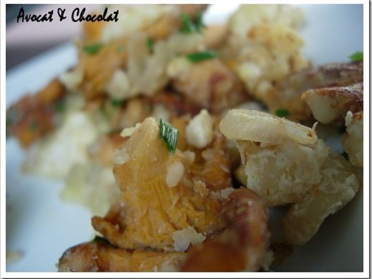 Poêlée de girolles et de châtaignes accompagnée d'un ecrasé de pomme de terre