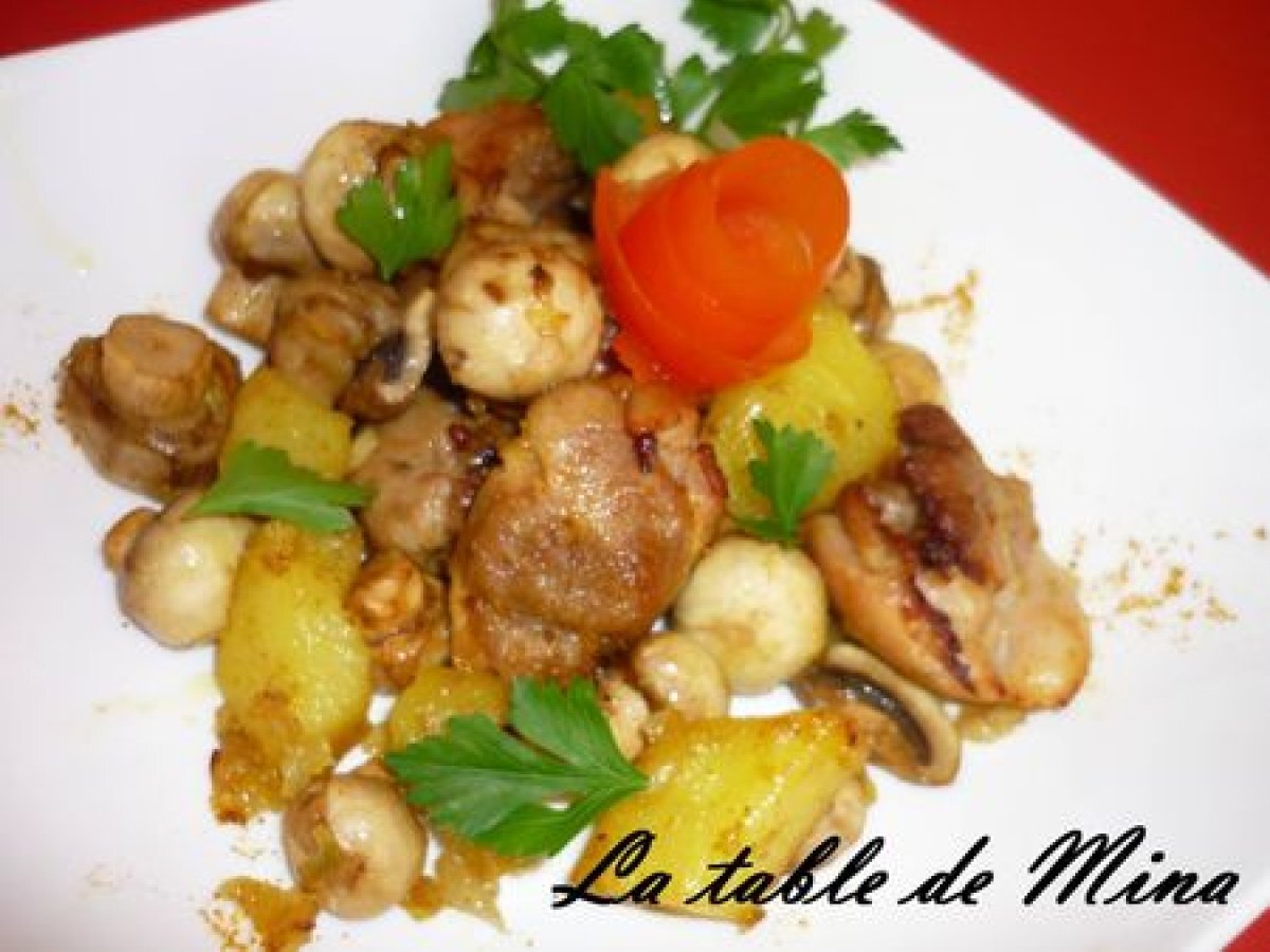 Poêlée de poulet aux champignons à l'actifry Platfacile40 min857 Kcal Envoyer cette recette à un ami Imprimer cette page Poser une question à l'auteur Publier votre photo de cette recette Ingrédients 4 1 cuillère à soupe d'huile 1 oignon haché une gousse d'ail poule sel et poivre Champignons pommes de terres