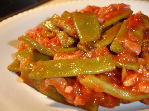 Pois gourmands a la tomate et aux lardons