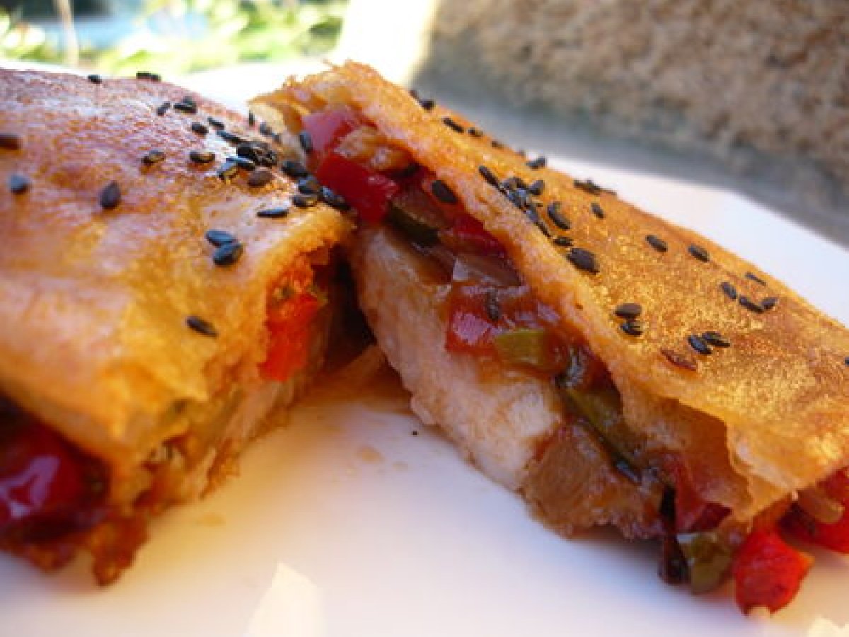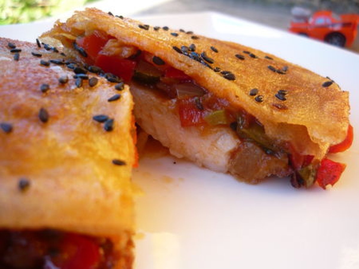 Poisson en feuille de brick à la thaïe PrécédentSuivant Platfacile16 min Envoyer cette recette à un ami Imprimer cette page Poser une question à l'auteur Publier votre photo de cette recette Ingrédients 2 2 filets de merlu ou cabillaud, coupés en 2 ou 4 pavés 1 poivron rouge 1 poivron vert 1/2 bouquet de coriandre 1 cm de gingembre haché 3 tomates 1 gousse d'ail 2 grosses échalotes 1/2 courgette feuilles de bricks huile de sésame 1 cuillère à soupe de concentré de tomates 2 cuillères à soupe de graines de sésame noir 3 cuillères à soupe de sauce de soja claire 3 cuillères à soupe de vinaigre de riz 1 cuillère à café de fécule sel poivre 1 jaune d'oeuf
