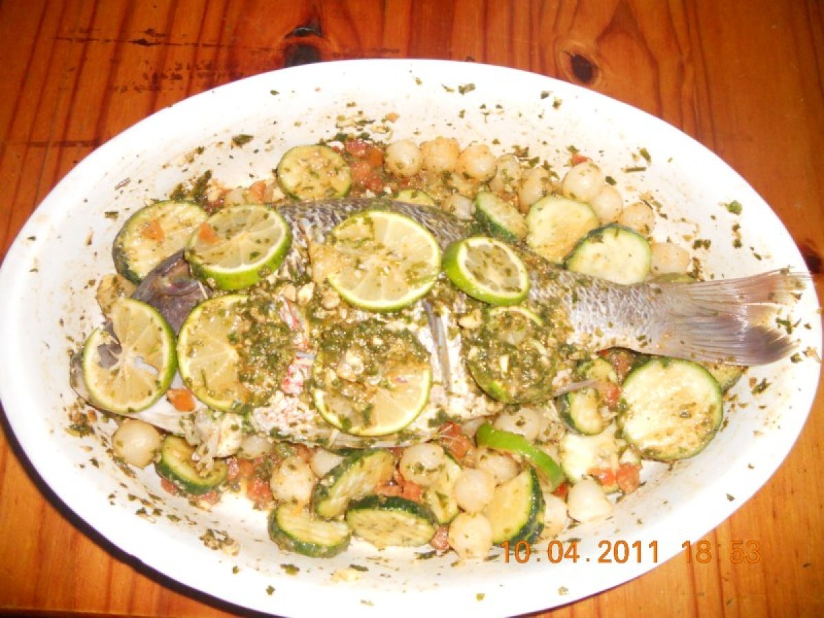 Poisson farcie aux épinards Platfacile1 heure Envoyer cette recette à un ami Imprimer cette page Poser une question à l'auteur Publier votre photo de cette recette Ingrédients 4 1 petit bouquet de coriandre 5 gousses dails 2 citrons 1 cuillère à café de cumin en poudre ½ cuillère à café de paprika ou de piment doux 1 pincée de piment fort 2 cuillères à soupe dhuile Sel 1 poisson de 1,5 kg (daurade, pageot ou loup) 150 g dépinard à la crème 1 citron des rondelles de courgette surgelées 200 g de dés de tomates surgelées 100 g de petits oignons nouveaux sugelés