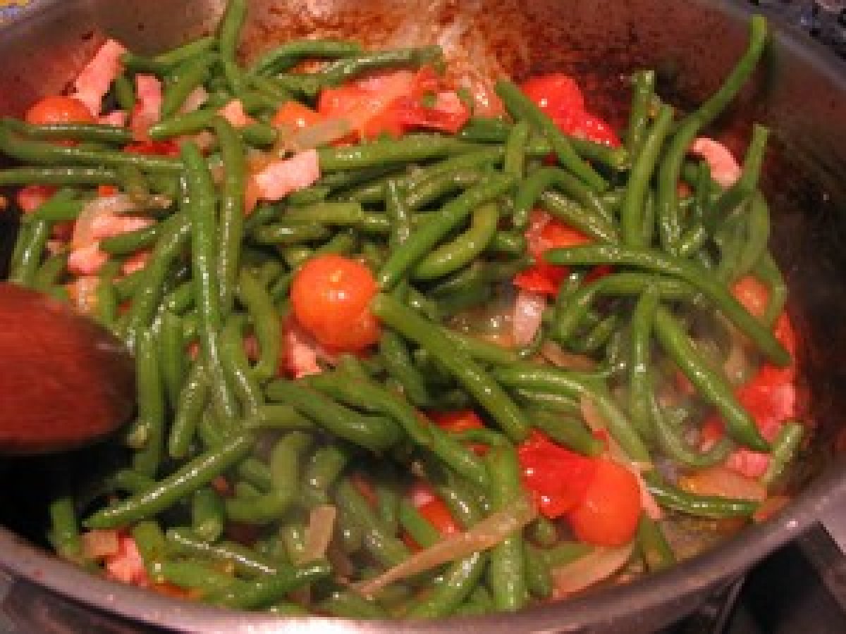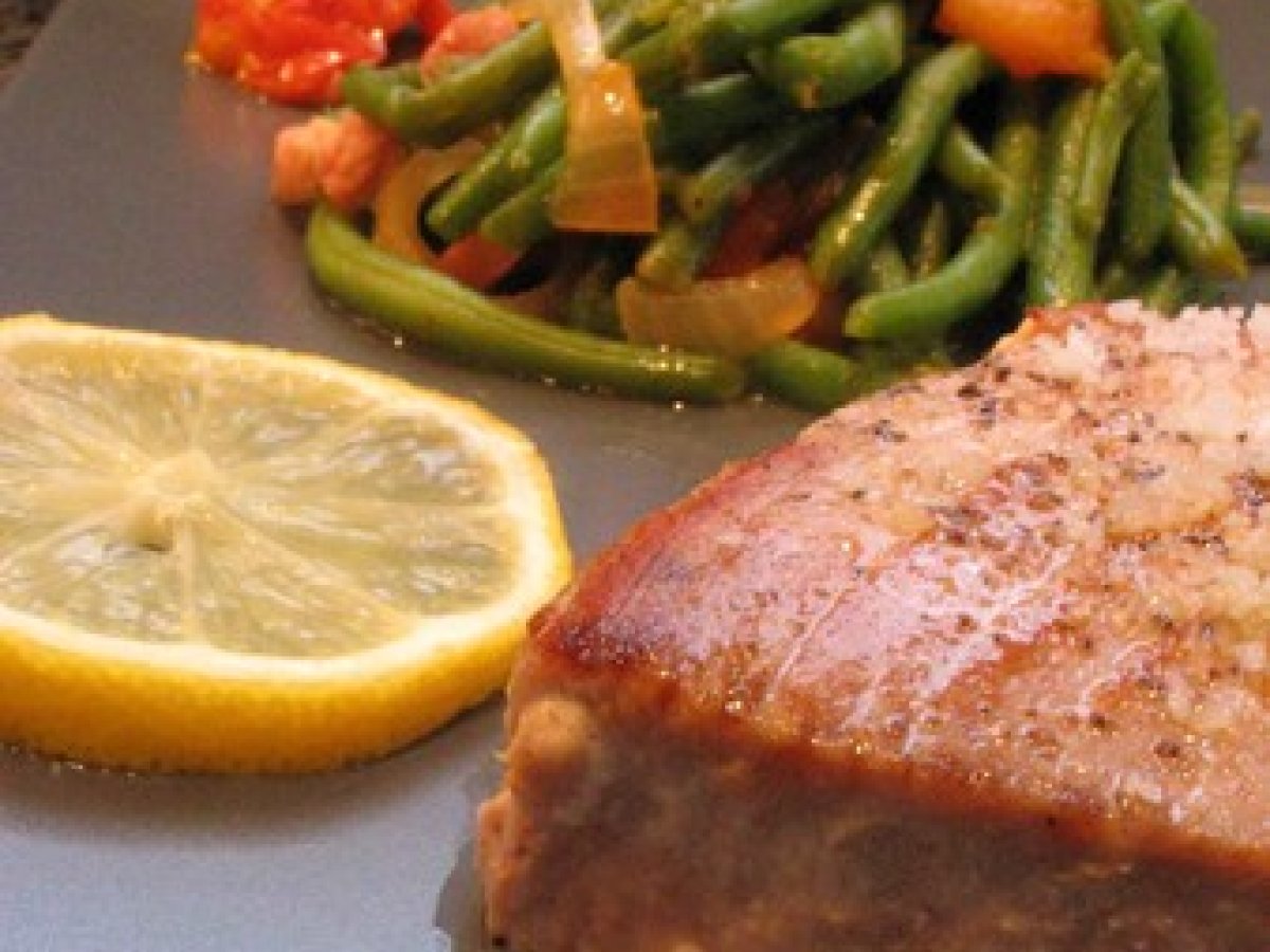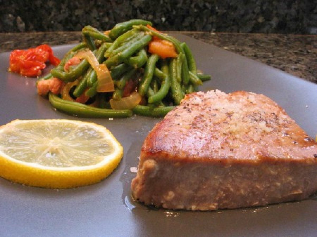 Poisson grillé et haricots verts à la tomate