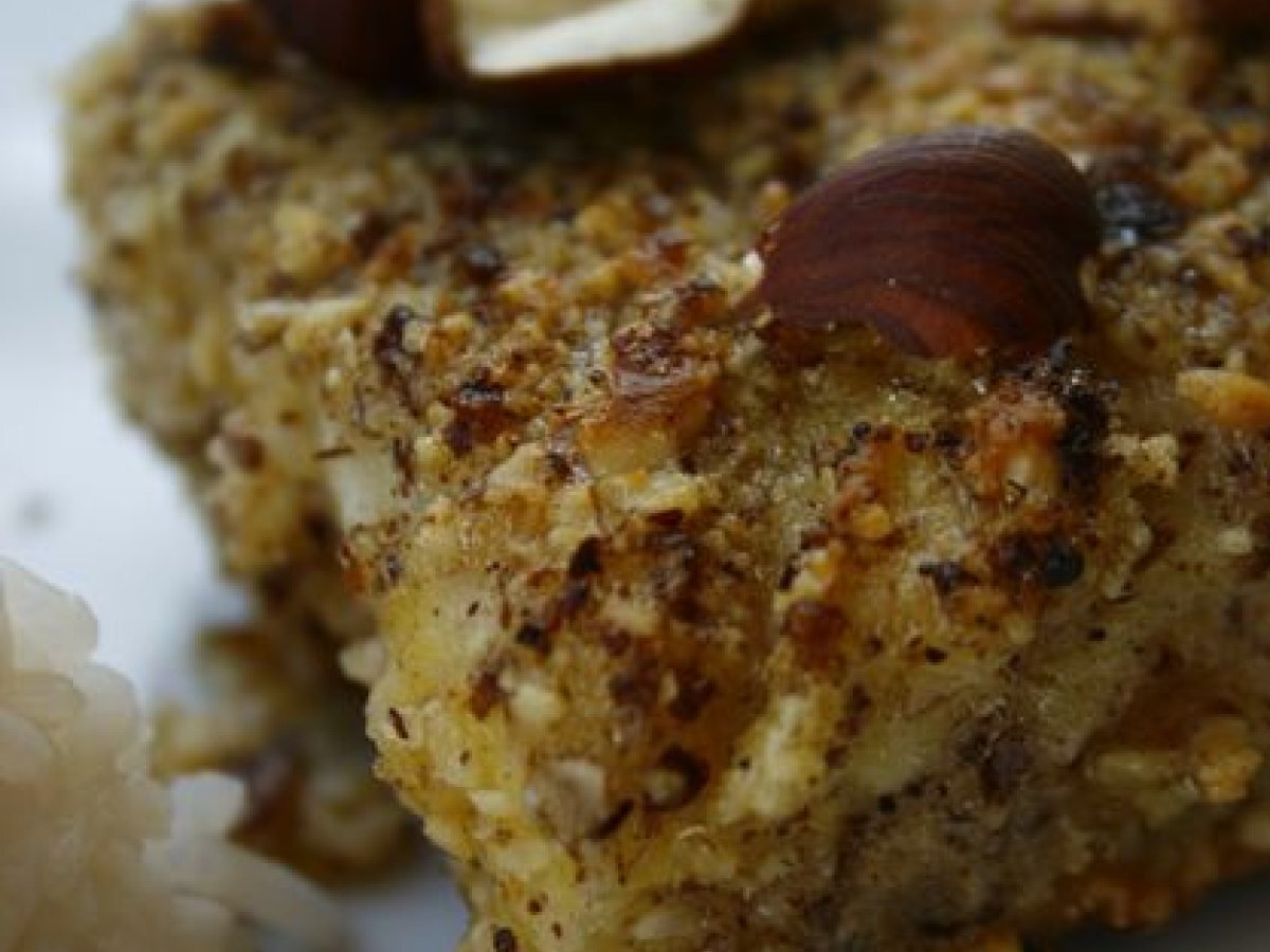 Voici une petite alternative de poisson à la chapelure avec des noisettes réduites en poudre.