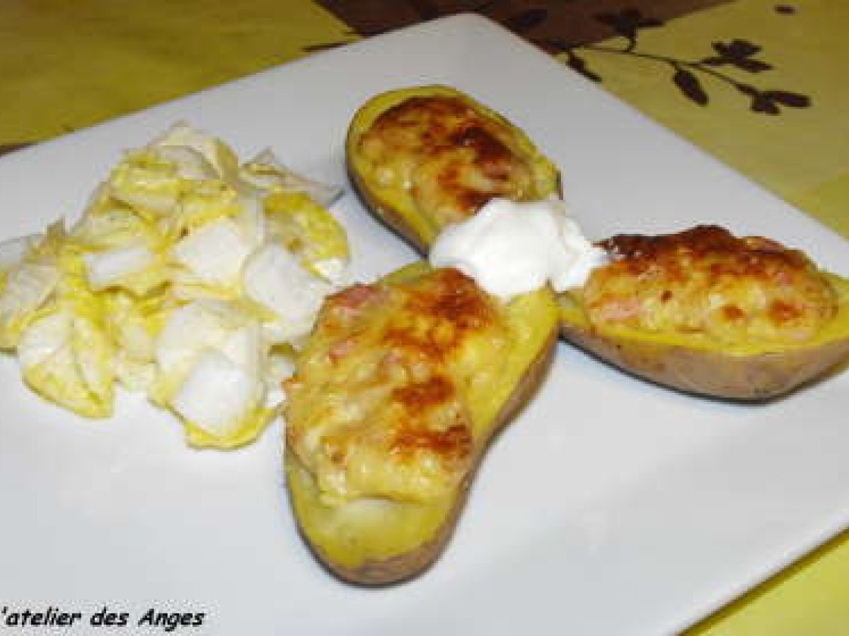 Pomme de terre farcie au saint nectaire Platmoyen40 min283 Kcal Envoyer cette recette à un ami Imprimer cette page Poser une question à l'auteur Publier votre photo de cette recette Ingrédients 4 4 grosses pommes de terre 2 tranches de jambon 1 oignon 100 gr de St-Nectaire (ou Laguiole ou Comté ...) 1 c à s d'huile d'olive