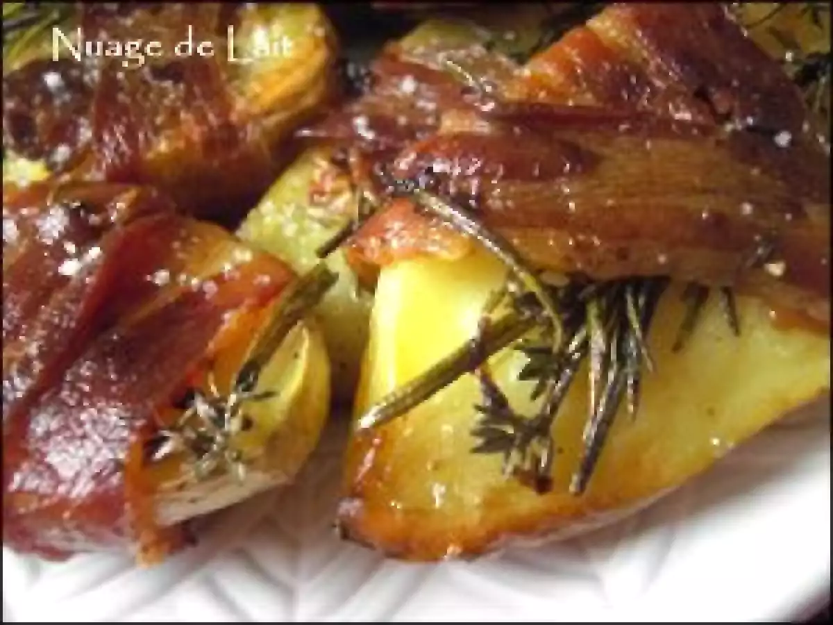 Pommes de terre au four au thym et romarin PrécédentSuivant Platfacile55 min Envoyer cette recette à un ami Imprimer cette page Poser une question à l'auteur Publier votre photo de cette recette Ingrédients 4 8 Pommes de Terre à chair ferme 2 par personne 16 fines Tranches de Poitrine Fumée 16 Brins de Romarin 16 Brins de Thym Huile d'Olive Fleur de Sel