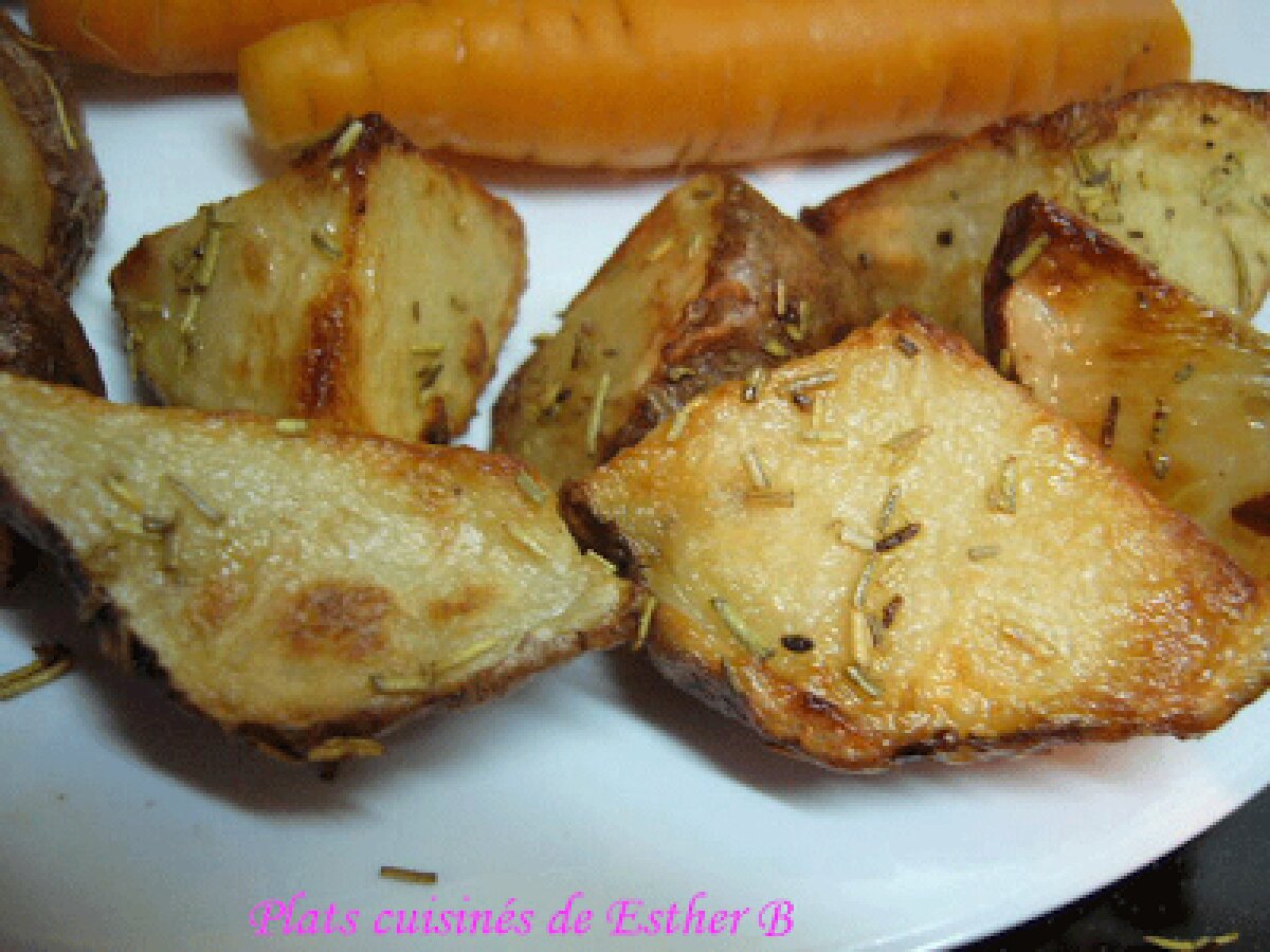 Pommes de terre au romarin votez maintenant Platfacile50 min Envoyer cette recette à un ami Imprimer cette page Poser une question à l'auteur Publier votre photo de cette recette Ingrédients 1 1/4 de cuillère à soupe de romarin frais haché ou 1 cuillère à soupe séché 2 grosses gousses d'ail, dégermées et hachées 2 cuillères à soupe de beurre fondu 2 cuillères à soupe d'huile 2 livres (950 g) de petites pommes de terre grelots Sel et poivre, au goût