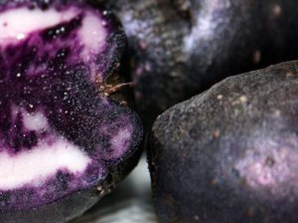 Connaissez-vous La Vitelotte, la pomme de terre de couleur violette! Elle est originaire du Pérou. C'est une variété tardive appréciée pour sa chair ferme d'un violet presque noir. Elle est idéale en ragoût, gratin, purée très sympa pour réaliser des salades panachées. Alors pour mettre un peu d'originalité à votre plat, essayer cette recette. C'est peu coûteux mais goûteux!