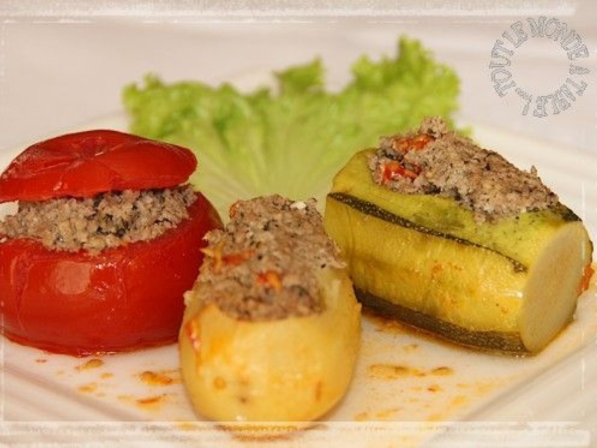 Pommes de terre, tomates et courgettes farcies en cocotte Platfacile45 min Envoyer cette recette à un ami Imprimer cette page Poser une question à l'auteur Publier votre photo de cette recette Ingrédients 4 7 tomates 7 pommes de terre charlotte moyennes 2 courgettes 500 g de boeuf haché (sans gras) 500 g de farce à légume 1 oeuf mie de pain 15 cl de lait 5 Cuillères à soupe + 1 Cuillère à soupe d'huile d'olive 6-7 brins de persil plat