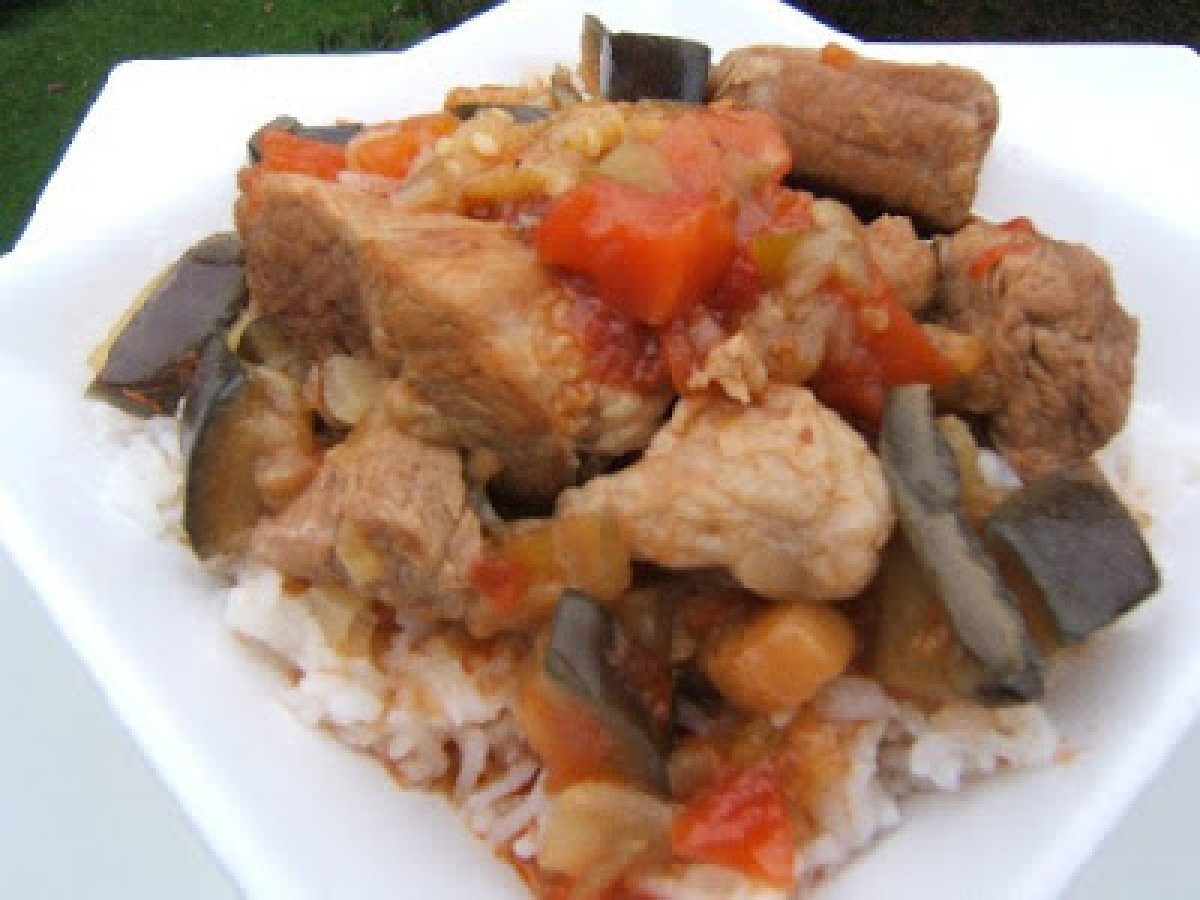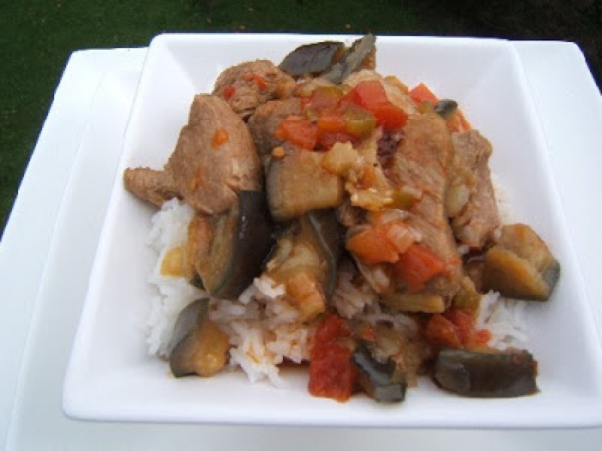 Porc à la créole votez maintenant PrécédentSuivant Platfacile2 heures881 Kcal Envoyer cette recette à un ami Imprimer cette page Poser une question à l'auteur Publier votre photo de cette recette Ingrédients 4 1 kg de porc dans le filet 1 gros oignon émincé 2 gousses d'ail écrasées 400 g de tomates pelées et concassées 1/2 piment vert antillais 1/2 cuillère à café de sel 1/2 cuillère à café de poivre noir du moulin 2 aubergines moyennes 2 cuillères à soupe d'huile d'olive du gros sel 1/2 litre de bouillon de volaille Coût estimé: 10.37Euros€ (2.59€/part)