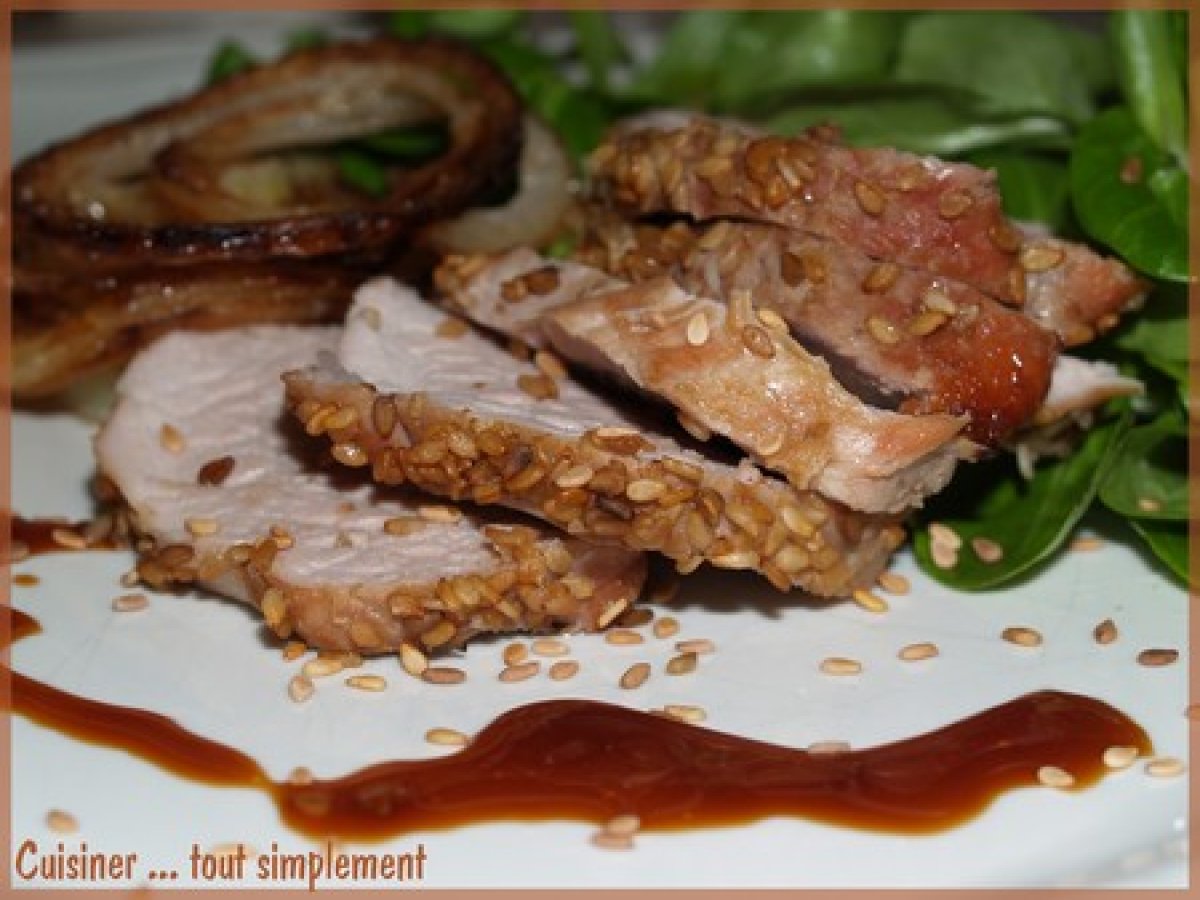 Porc laqué au soja et aux sésames PrécédentSuivant Platfacile45 min438 Kcal Envoyer cette recette à un ami Imprimer cette page Poser une question à l'auteur Publier votre photo de cette recette Le porc est succulent et savoureux Ingrédients 4 400g de filet de Porc 2 c à soupe de sauce soja 2 c à soupe de miel 2 gousses d'ail 1 c à soupe de farine 1 oignon Graines de sésame Coût estimé: 4.22Euros€ (1.06€/part)