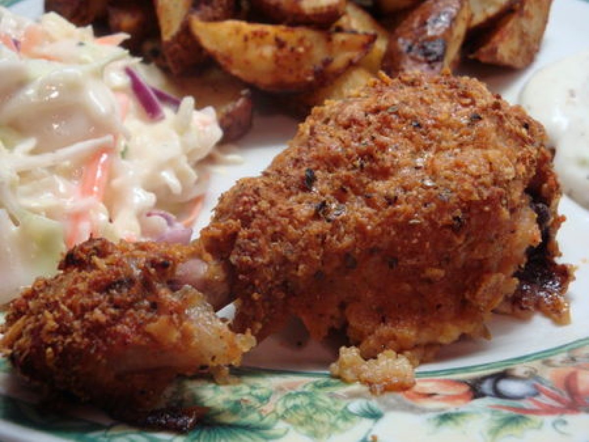 Positive junk food ... ou le "faux" poulet frit (poulet pané au four) votez maintenant Platfacile55 min377 Kcal Envoyer cette recette à un ami Imprimer cette page Poser une question à l'auteur Publier votre photo de cette recette Ingrédients 6 6 pilons de poulet 1 Tasse de babeurre piment chipotle jus d'un citron vert 1/2 Tasse de farine complète 1 Tasse de corn flakes 30 g de parmesan 1 cuillère à café de paprika 1 cuillère à café de marjolaine 1/2 cuillère à café de thym 1/2 cuillère à café de sel 1/4 cuillère à café de poudre d'ail 1/4 cuillère à café de poudre d'oignon 1/4 cuillère à café de poivre 2 cuillères à soupe de beurre léger