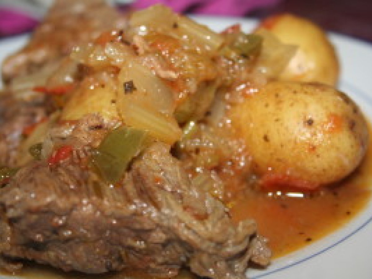 Pot-au-feu à la provençale votez maintenant Platfacile2 h 15 m718 Kcal Envoyer cette recette à un ami Imprimer cette page Poser une question à l'auteur Publier votre photo de cette recette Ingrédients 4 1 kg de carbonnades de boeuf 6 tomates 1 céleri blanc 4 gros poivrons verts 2 gros oignons 1 cuillère à soupe d'herbes de Provence huile d'olive 3 cubes de bouillon de boeuf 800 g de pommes de terre grenailles sel poivre