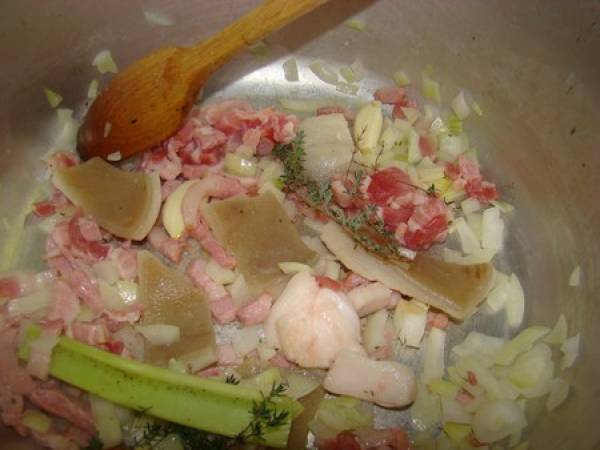 le bouquet garni- Faire couvrir d'eau et faite partir à bon feu pour deux heures bon poids (les pieds et jarret sont longs à cuire)