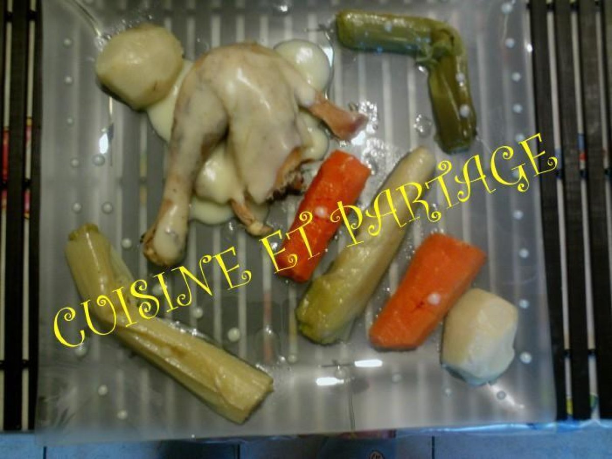 Nettoyer et peler les légumes, les laisser entiers. Au bout d'une heure , mettre vos légumes dans la cocotte, couvrir à moitié et laisser mijoter doucement à peu près encore 1 heure, à surveiller la cuisson de la poule (selon sa grosseur). - Pour la sauce blanche :