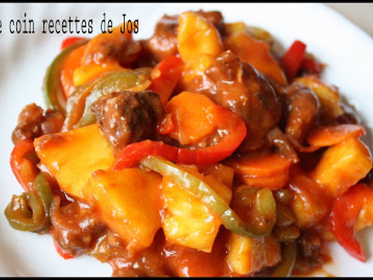 Poulet à l'ananas, sauce aigre douce Platfacile35 min Envoyer cette recette à un ami Imprimer cette page Poser une question à l'auteur Publier votre photo de cette recette Ingrédients 4 450 g de poulet 2 carottes 1 oignon 1 poivron vert 1 rouge 2 céleri 1 ananas ou 350 g d'ananas en conserve 1 tasse de sauce tomate 6 cuillères à soupe de vinaigre 3 cuillères à soupe de sucre 1 cuillère à soupe de sauce aux huîtres 2 cuillères à soupe de sauce soya 1 cuillère à soupe de fécule de maïs