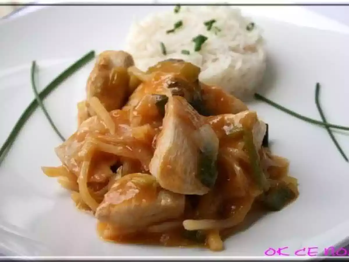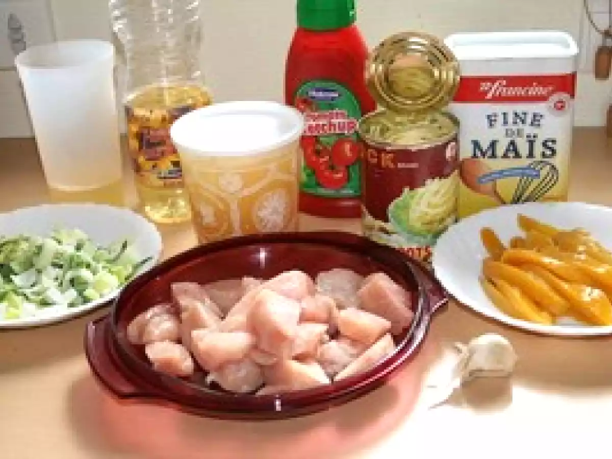 Poulet à la mangue et au poireau votez maintenant PrécédentSuivant Platfacile20 min Envoyer cette recette à un ami Imprimer cette page Poser une question à l'auteur Publier votre photo de cette recette Voici un menu simple et éblouissant. Ingrédients 4 1 cuillère à soupe d'huile 3 ou 4 blancs de poulet suivant leur taille 2 gousses d'ail hachées 225 g de poireau coupé en lanières 100 g de pousses de bambou en bâtonnets 1 boite de mangue au sirop 1 cuillère à soupe de vin blanc se 2 cuillères à soupe de miel 2 cuillères à soupe de ketchup 1 cuillère à café de maïzena