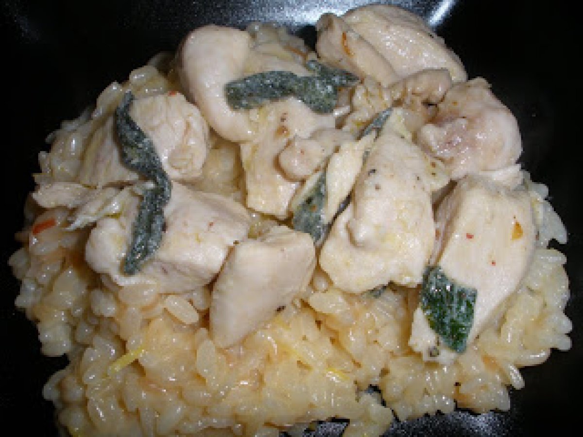 Poulet à la sauge et risotto au citron