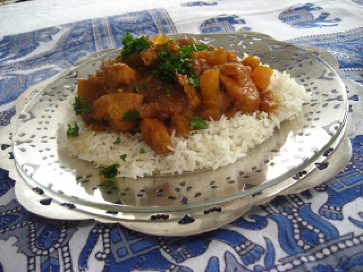 Poulet au cari bombay - délice & sens votez maintenant Platfacile1 h 2 m Envoyer cette recette à un ami Imprimer cette page Poser une question à l'auteur Publier votre photo de cette recette Ingrédients 4 2 cuillères à soupe d'huile d'olive 1 oignon haché 2 gousses d'ail broyées 1 cuillère à table de gingembre frais râpé 2 pommes à cuire, pelées, épépinées et coupées en dés 2 poitrines de poulet désossées ou 4 suprêmes, coupés en dés ou en languettes 1 cuillère à table de poudre de cari 1 grosse tomate, pelée et épépinée ou 1 mangue, pelée et coupée en dés (facultatif) 1 tasse de bouillon de poulet 1 cuillère à soupe de pâte de tomate 1 cuillère à soupe de Chutney de mangue 1 cuillère à soupe de jus de citron 2 cuillères à table de feuilles de coriandre hachées 1 tasse de riz basmati 1 tasse d'eau froide 1 bâton de cannelleHuile essentielles Bombay de Délice & Sens (12 gouttes ou plus)