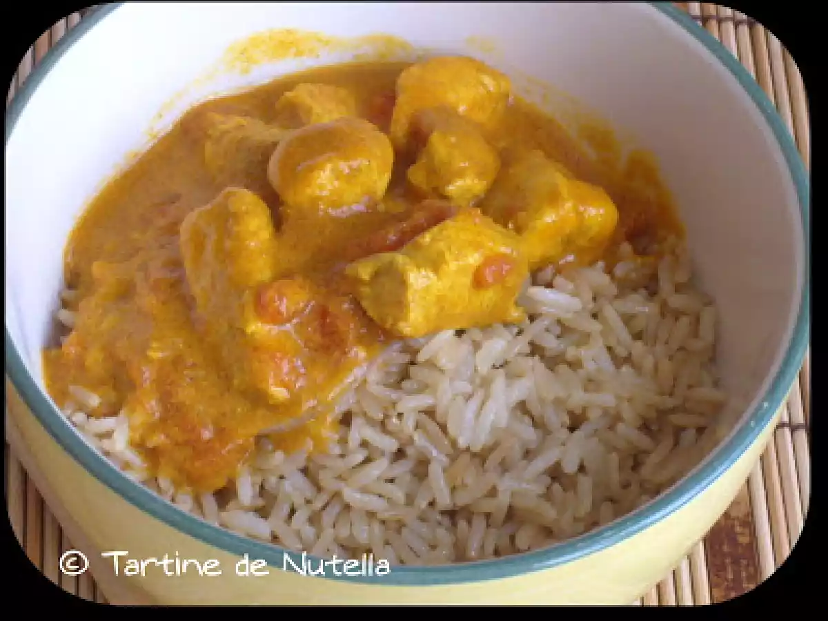 Poulet au curry et son riz complet pilaf votez maintenant PrécédentSuivant Platfacile35 min456 Kcal Envoyer cette recette à un ami Imprimer cette page Poser une question à l'auteur Publier votre photo de cette recette Ingrédients 3 3 blancs de poulet coupés en cubes 3 tomates mondées épépinées ou non 1 oignon 1 cs d'huile d'olive 1 bouillon de poule sel/ poivre/ curry du riz complet de la crème liquide Coût estimé: 5.32Euros€ (1.77€/part)