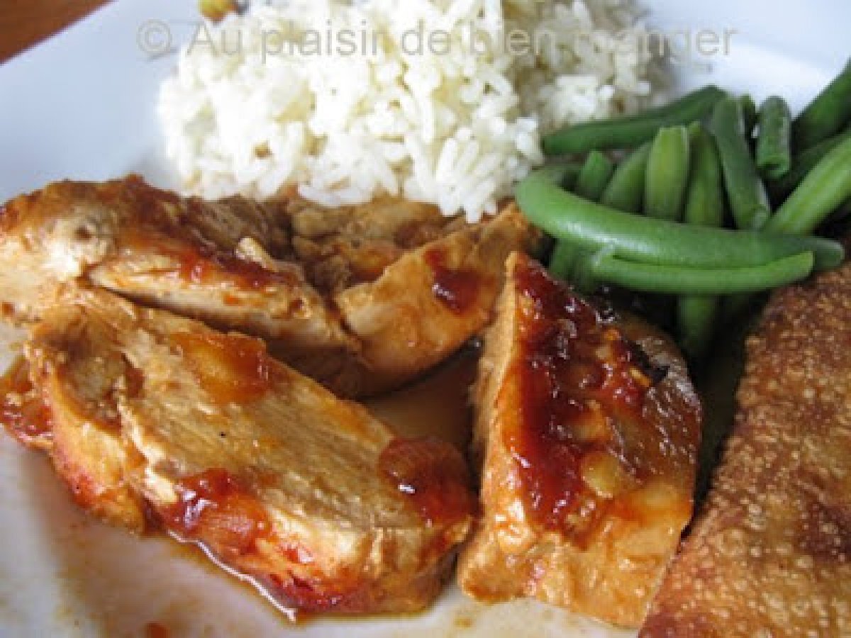 Poulet au goût de spare ribs Platfacile1 heure233 Kcal Envoyer cette recette à un ami Imprimer cette page Poser une question à l'auteur Publier votre photo de cette recette Ingrédients 4 4 poitrines de poulet désossée, la peau enlevée et coupées en lanières 4 cuillères à soupe de vin rouge 4 cuillères à soupe de mélasse 4 cuillères à soupe de ketchup 3 cuillères à soupe de sauce chili 3 cuillères à soupe de sauce soya 2 cuillères à thé d'ail haché 1 oignon haché sel poivre au goût Coût estimé: 1.46Euros€ (0.37€/part)
