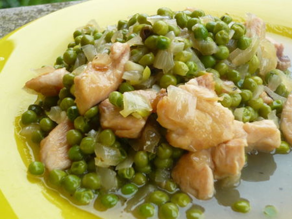 Poulet aux petits pois Platfacile30 min395 Kcal Envoyer cette recette à un ami Imprimer cette page Poser une question à l'auteur Publier votre photo de cette recette Ingrédients 3 3 gros blancs de poulet 400 g de petits pois congelés 2 gros oignons 150 ml de vin blanc farine thym sucre en poudre Coût estimé: 5.55Euros€ (1.85€/part)
