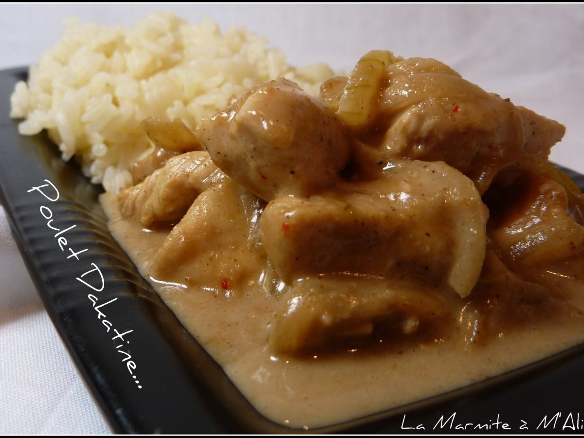Poulet coco dakatine Platfacile55 min354 Kcal Envoyer cette recette à un ami Imprimer cette page Poser une question à l'auteur Publier votre photo de cette recette Ingrédients 4 4 blancs de poulet 3 oignons 1 morceau de beurre 1 peu d'huile d'olive 2 cuillères à café de Garam Masala moulu 2 cuillères à soupe de Dakatine 20 cl de lait de coco 1 Kub Or dilué dans un petit verre d'eau chaude 1 cuillère à moka rase de piment d'Espelette Coût estimé: 7.64Euros€ (1.91€/part)