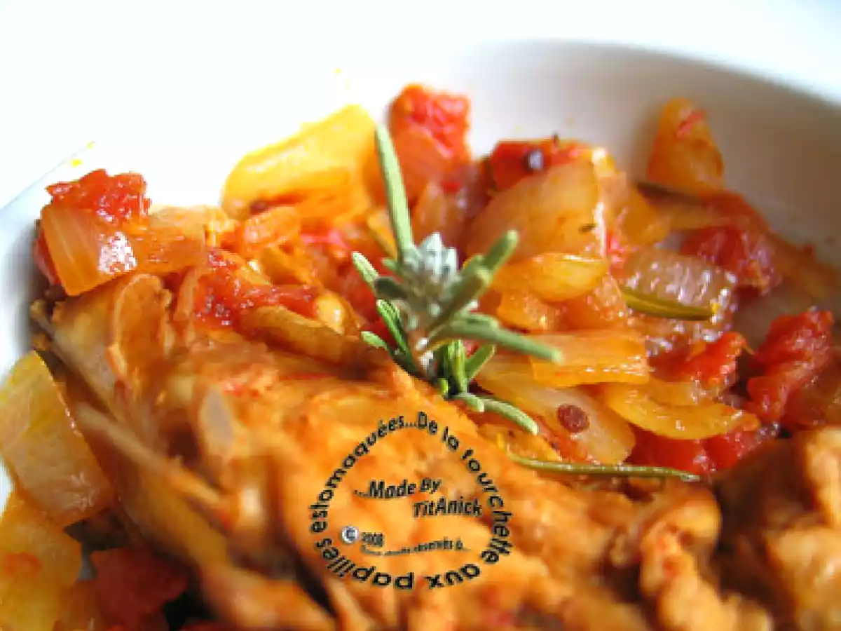 Poulet en cocotte au vin blanc, tomates et oignons aux fines herbes Platfacile40 min452 Kcal Envoyer cette recette à un ami Imprimer cette page Poser une question à l'auteur Publier votre photo de cette recette Ingrédients 4 1 beau poulet fermier 4 gros oignons 2 cuillères à soupe de concentré de tomates 750 ml de tomates entières en conserve 250 ml de vin blanc Huile d'olive 1 branche de thym 1 branche de romarin Sel et poivre Coût estimé: 8.33Euros€ (2.08€/part)