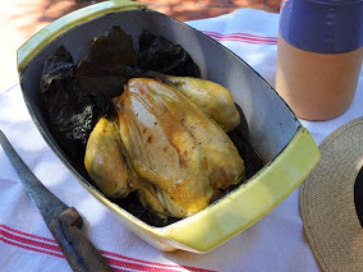 Poulet entier en feuilles de figuier
