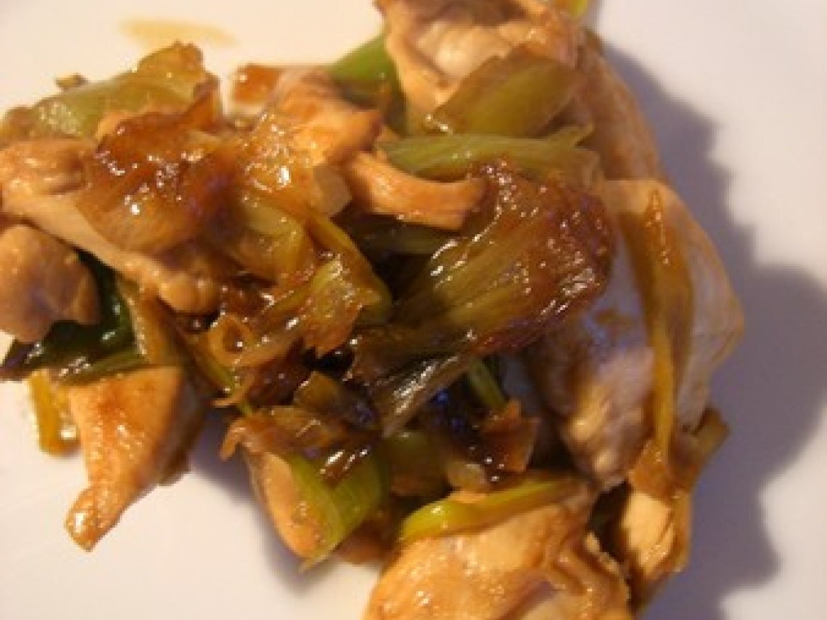 Poulet et poireaux à l'huile de sésame sautés au wok