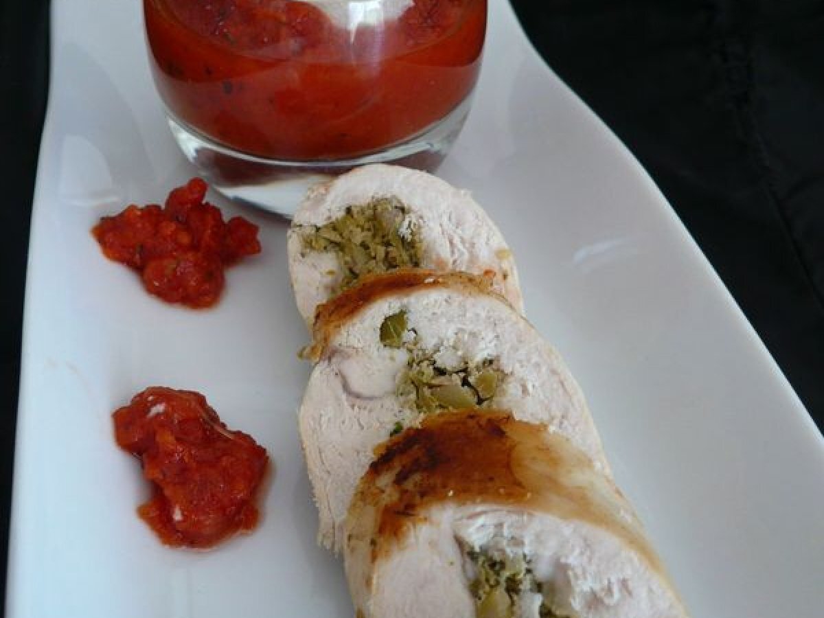Poulet farci à la tapenade et son coulis de tomate