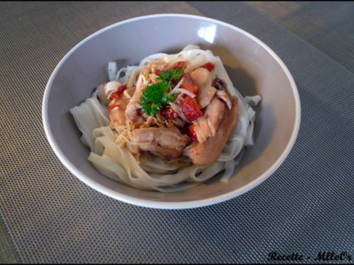 Poulet gingembre, sauce soja votez maintenant Platfacile38 min Envoyer cette recette à un ami Imprimer cette page Poser une question à l'auteur Publier votre photo de cette recette Ingrédients 2 2 blancs de poulet 2 cuillères à soupe d'huile de tournesol 1 cuillère à soupe d'ail en poudre 1 cuillère à café de piment d'Espelette 3 à 4 cuillères à soupe de gingembre en poudre 3 cuillères à soupe de cassonnade Sauce soja 1 poivron rouge mariné ou 1/2 poivron frais 1 oignon moyen 1 petite boite de germes de soja 1/2 paquet de nouilles chinoises