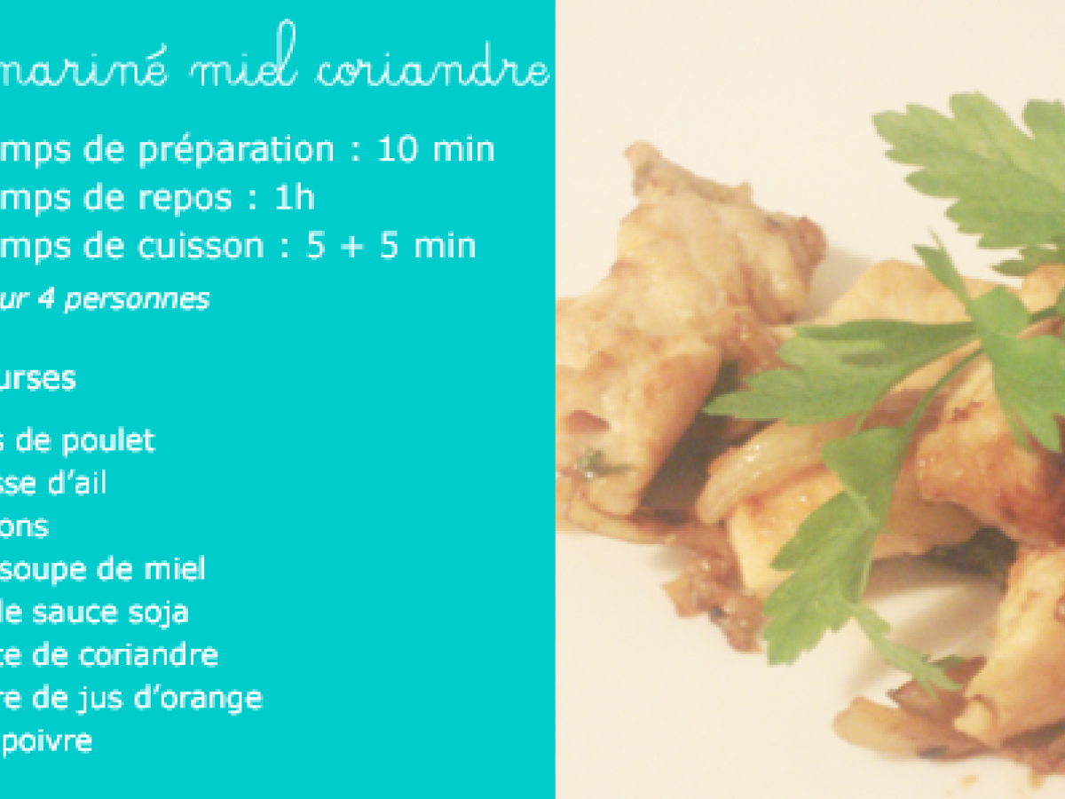 Beaucoup de recette laissent aujourd'hui la place au poulet mariné miel et coriandre.C'est trop bon!Bon appétit!
