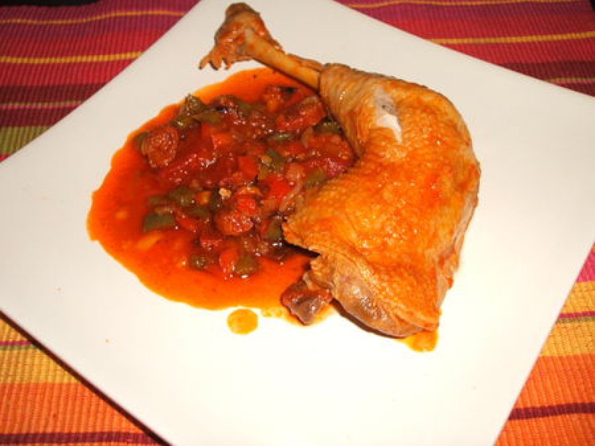 Poulet mijoté au chorizo et aux petits légumes Platfacile1 h 10 m Envoyer cette recette à un ami Imprimer cette page Poser une question à l'auteur Publier votre photo de cette recette Ingrédients 4 4 cuisses de poulet 1 poivron rouge coupé en petits cubes 1 poivron vert coupé en petits cubes 1 boîte de tomates pelées de 400g 2 oignons finement émincés 1 chorizo sans la peau (le passer sous l'eau pour l'enlever), coupé en rondelles 20 cl de vin blanc 1 cuillère à café de paprika 2 grosses pincées de cumin 2 grosses pincées de poudre de chili (ou piment de Cayenne) sel & poivre