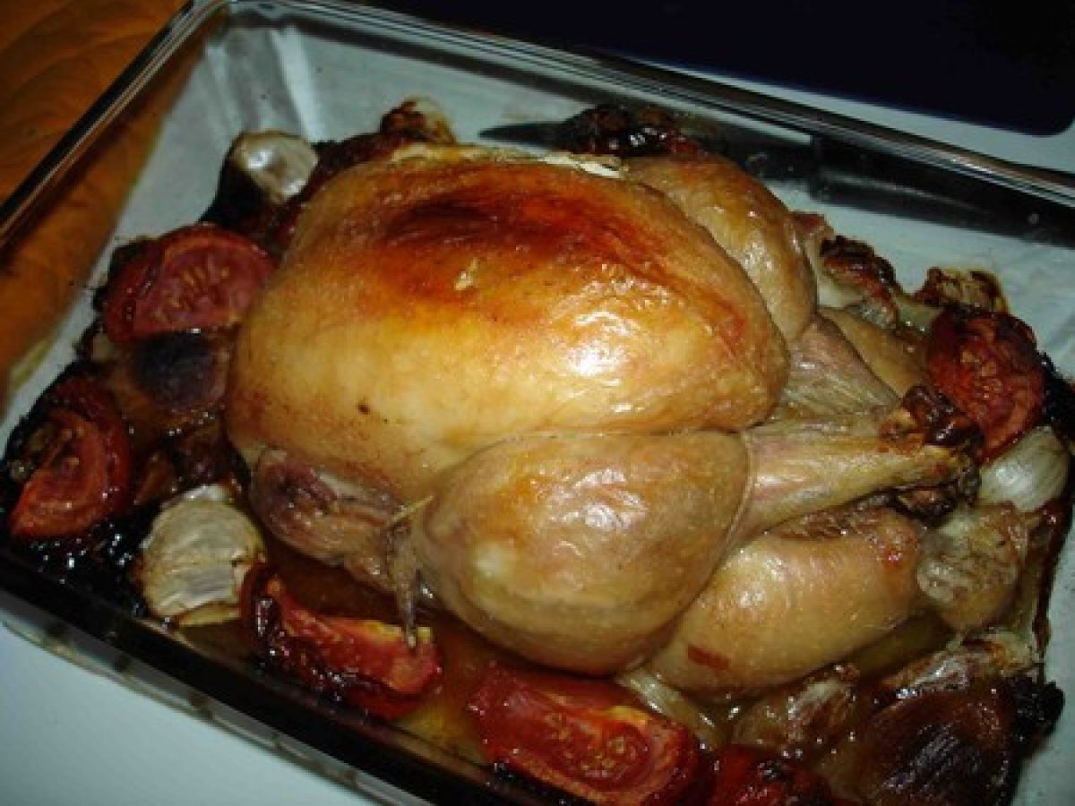 Poulet rôti à l'ail et aux oignons, presque sans les mains !