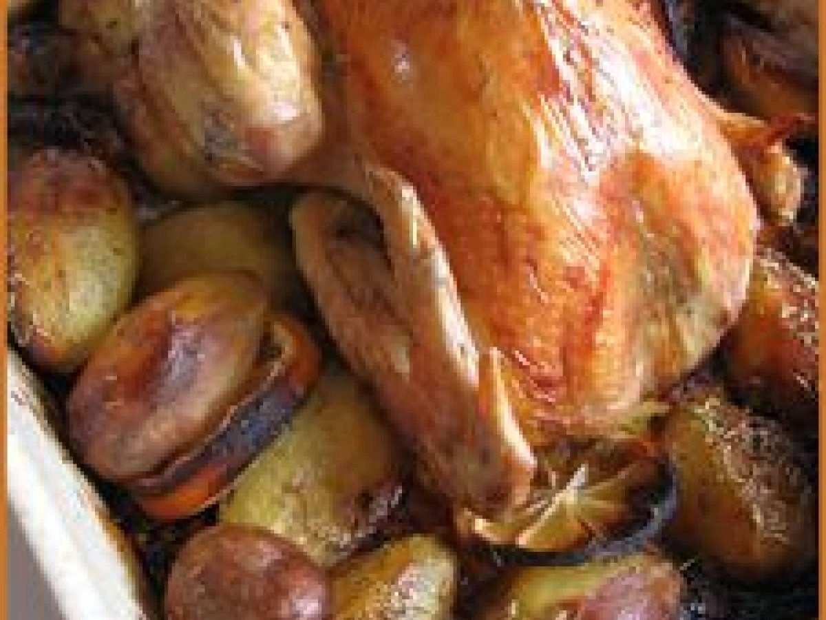 Poulet rôti et pommes de terre au four Platfacile2 h 15 m Envoyer cette recette à un ami Imprimer cette page Poser une question à l'auteur Publier votre photo de cette recette Ingrédients 4 1 noix de beurre (pas mise) 1 poulet d'environ 1,5 kg 1 kg de pommes de terre à chaire ferme 2 gousses d'ail 10 cL de vin blanc 10 cL de bouillon de volaille 2 brins de romarin frais 6 feuilles de laurier 1 citron