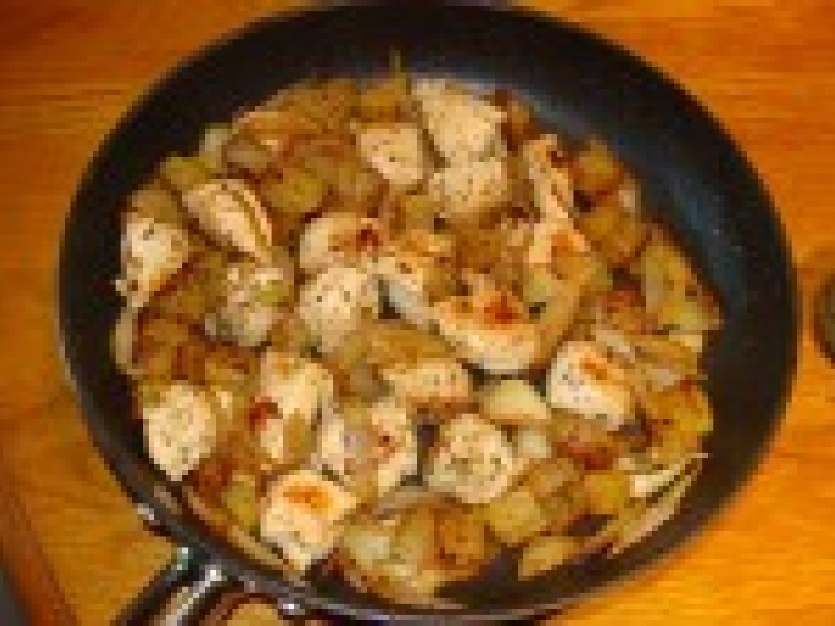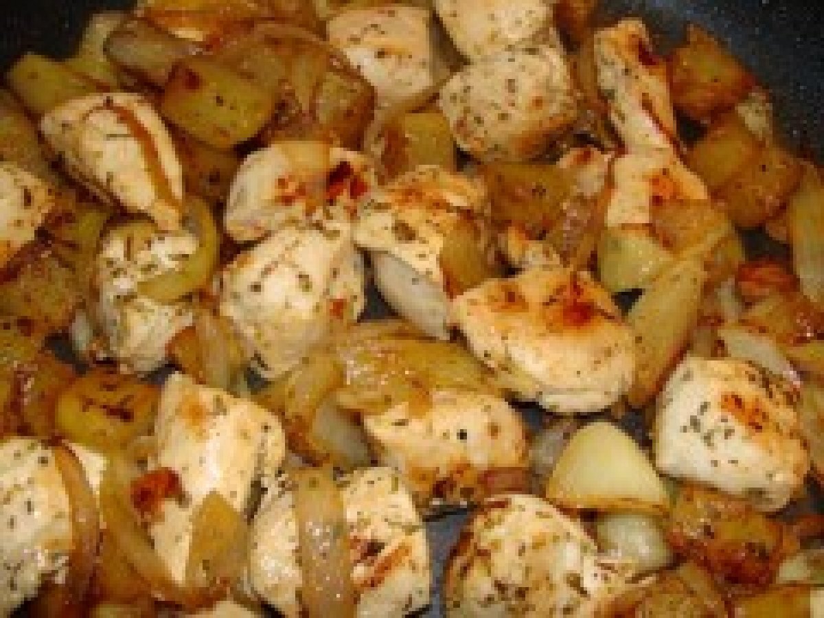 Poulet sauté aux oignons PrécédentSuivant Platfacile20 min215 Kcal Envoyer cette recette à un ami Imprimer cette page Poser une question à l'auteur Publier votre photo de cette recette Ingrédients 4 4 blanc de poulet 2 ou 3 gros oignons 4 pommes de terres 1 gousses d'ail thym poivre sel Coût estimé: 6.76Euros€ (1.69€/part)