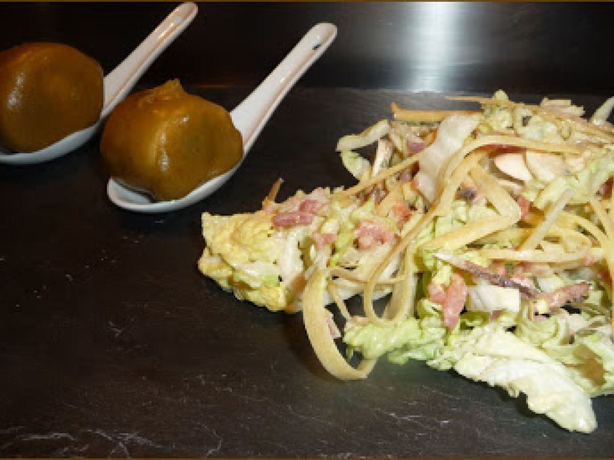 Poulet tandoori, panais & ocas du pérou votez maintenant Platfacile10 h 31 m Envoyer cette recette à un ami Imprimer cette page Poser une question à l'auteur Publier votre photo de cette recette Ingrédients 2 2 Filets de Poulet 2 Cuillères à soupe de Pâte Tandoori Sel Poivre 150 g de Purée Panais/ du Pérou chinoisé et assaisonnée 80 g de Fond Blanc de Volaille 4 g de Kappa Carraghénane Salade de Chou chinois, où l'on joue des textures