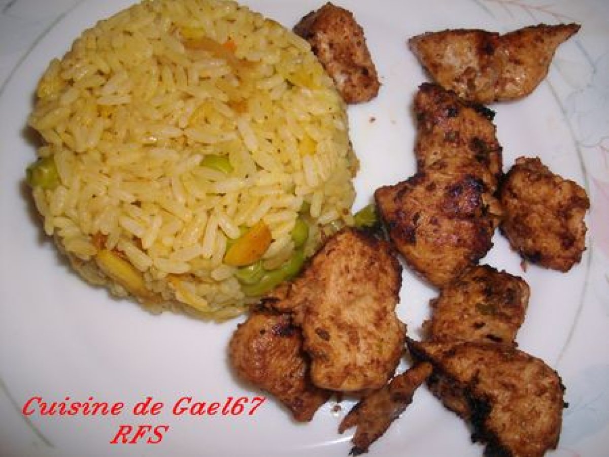 Poulet tandori et riz indien (trio deco) de titi Platfacile22 min414 Kcal Envoyer cette recette à un ami Imprimer cette page Poser une question à l'auteur Publier votre photo de cette recette Ingrédients 2 du blanc de poulet 1 yaourt nature des épices tandoori du persil plat 2 oignons des amandes effilées du riz basmati du curry du gingembre du cumin 1 boite de petits pois carottes Coût estimé: 4.68Euros€ (2.34€/part)