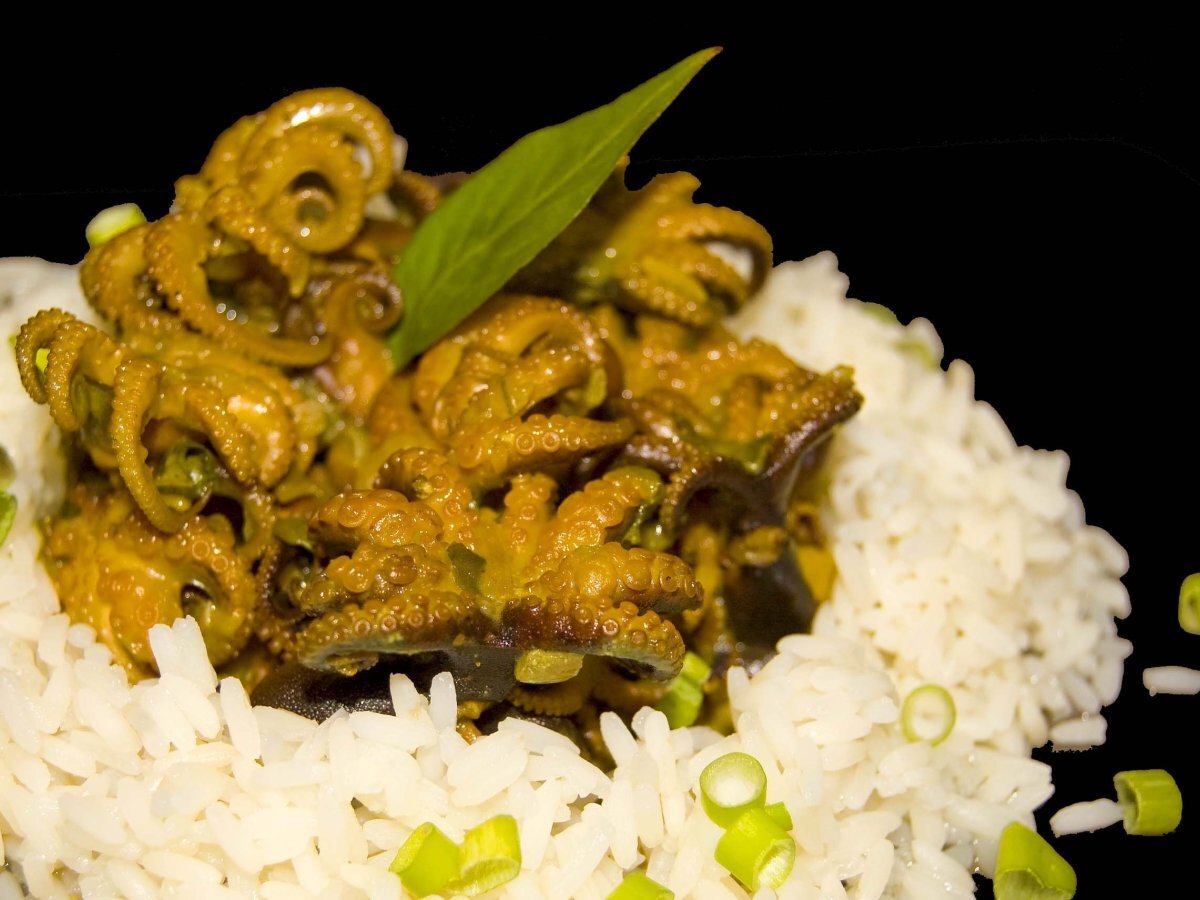 Poulpes "façon thai". Platmoyen30 min Envoyer cette recette à un ami Imprimer cette page Poser une question à l'auteur Publier votre photo de cette recette Ingrédients 2 800 g de petits poulpes 2 c à s d?huile d?olive 125 ml de crème de noix de coco 2 oignons émincés 4 oignons verts émincés 2 gousses d?ail écrasées 1cm de gingembre haché 1 c à c bombée de curcuma 15 feuilles de Rau Ram sel et poivre du piment