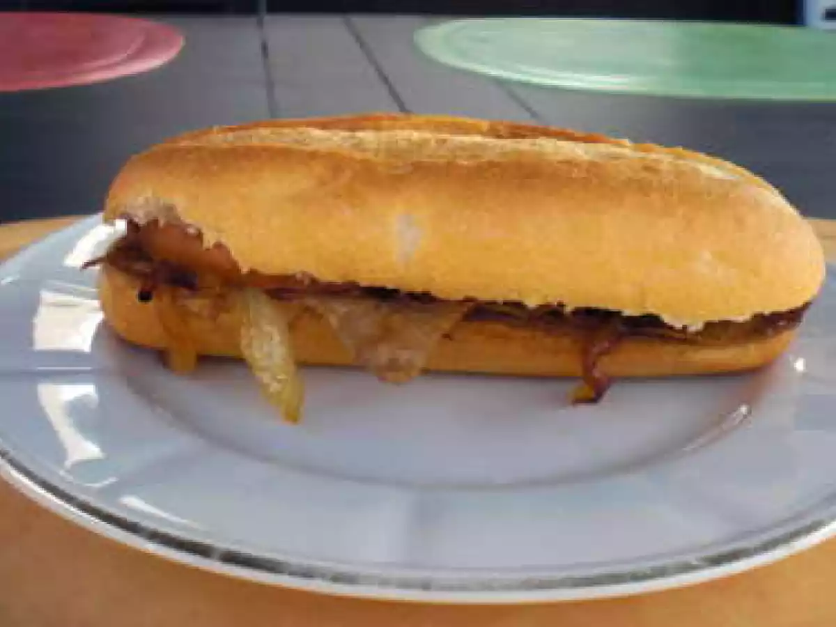 - Mouillez le bas du sandwich dans le mélange oxo-ail (attention à ne pas trop mouillez), dessus mettre 2 morceaux de viandes et par-dessus les oignons frits.