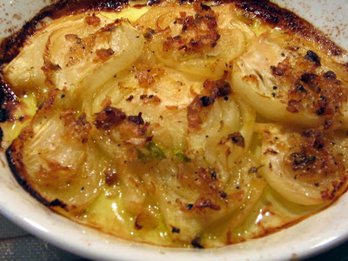 Purée de céleri-chataîgne fumée et gratin de fenouil