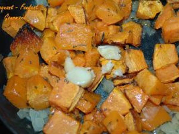 Purée de potiron à l'ail et au romarin votez maintenant PrécédentSuivant Platfacile1 h 5 m204 Kcal Envoyer cette recette à un ami Imprimer cette page Poser une question à l'auteur Publier votre photo de cette recette Ingrédients 3 1 kg de potiron (845 g de chair) 2 oignons 4 gousses d'ail 1 cuillère à soupe de brindilles de romarin hachées 3 cuillères à soupe d'huile d'olive 1 cuillère à soupe de persil ciselé sel poivre du moulin Coût estimé: 4.4Euros€ (1.46€/part)