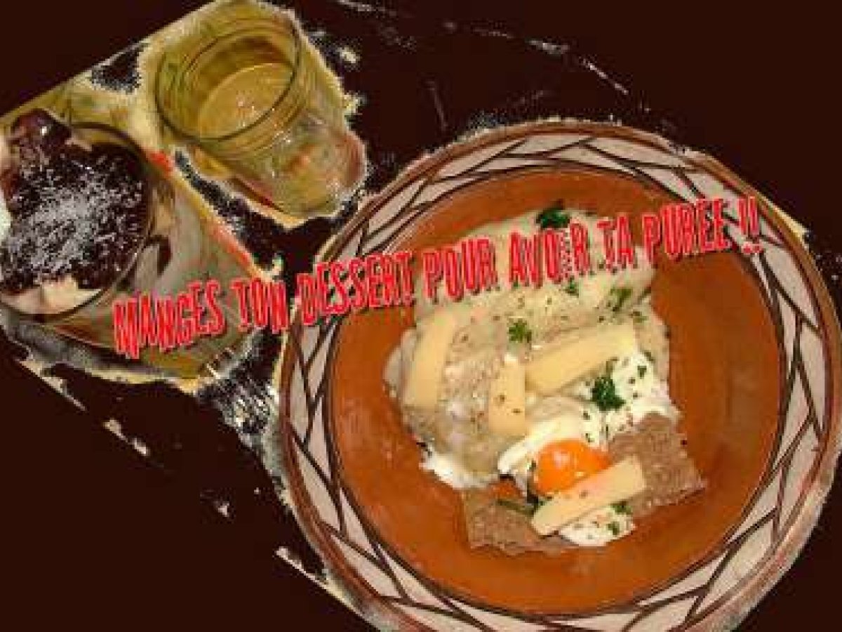 Purée figée et oeuf mollet Platfacile40 min962 Kcal Envoyer cette recette à un ami Imprimer cette page Poser une question à l'auteur Publier votre photo de cette recette Ingrédients 2 8 patates douces 1 cuillère de crème fixe (pour chantilly) ¼ de verre de lait concentré non sucré Sel Poivre Persil 1 uf par assiette Ail Une noix de margarine végétale (facultatif) Fromage à râper Coût estimé: 8.79Euros€ (4.39€/part)